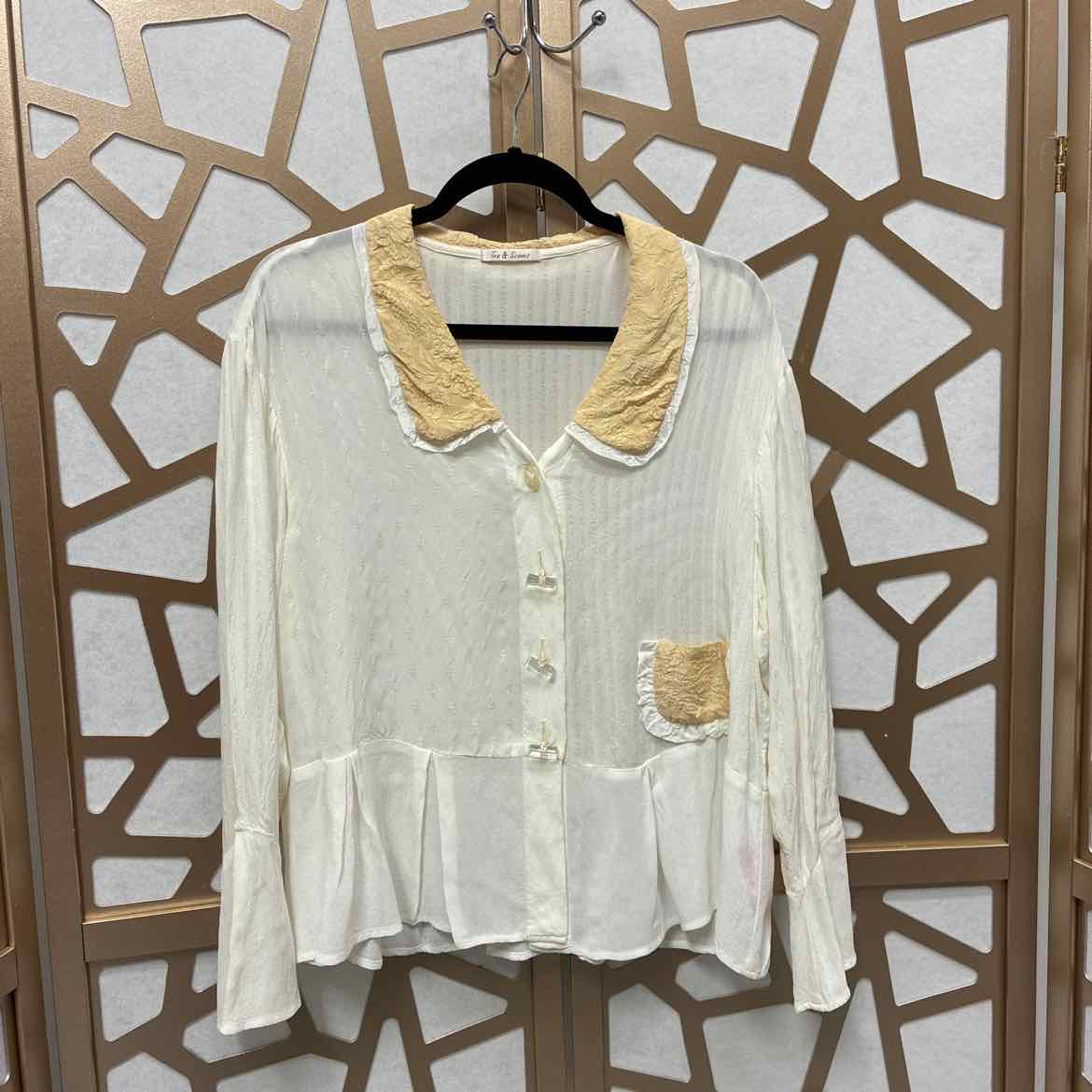 LS, button front, tan collar and pocket