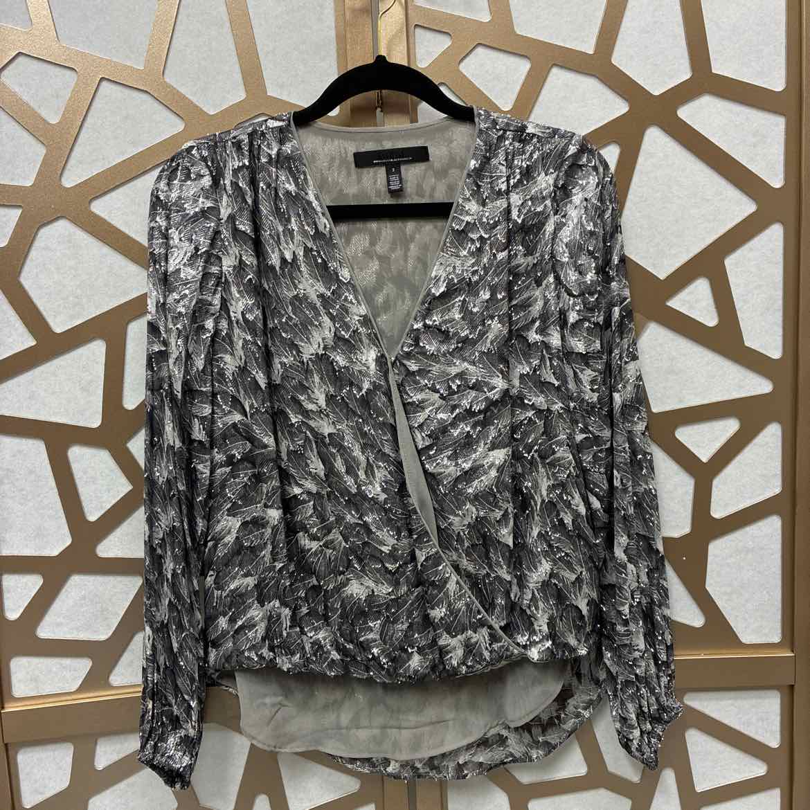 LS, faux wrap, abstract leaf print