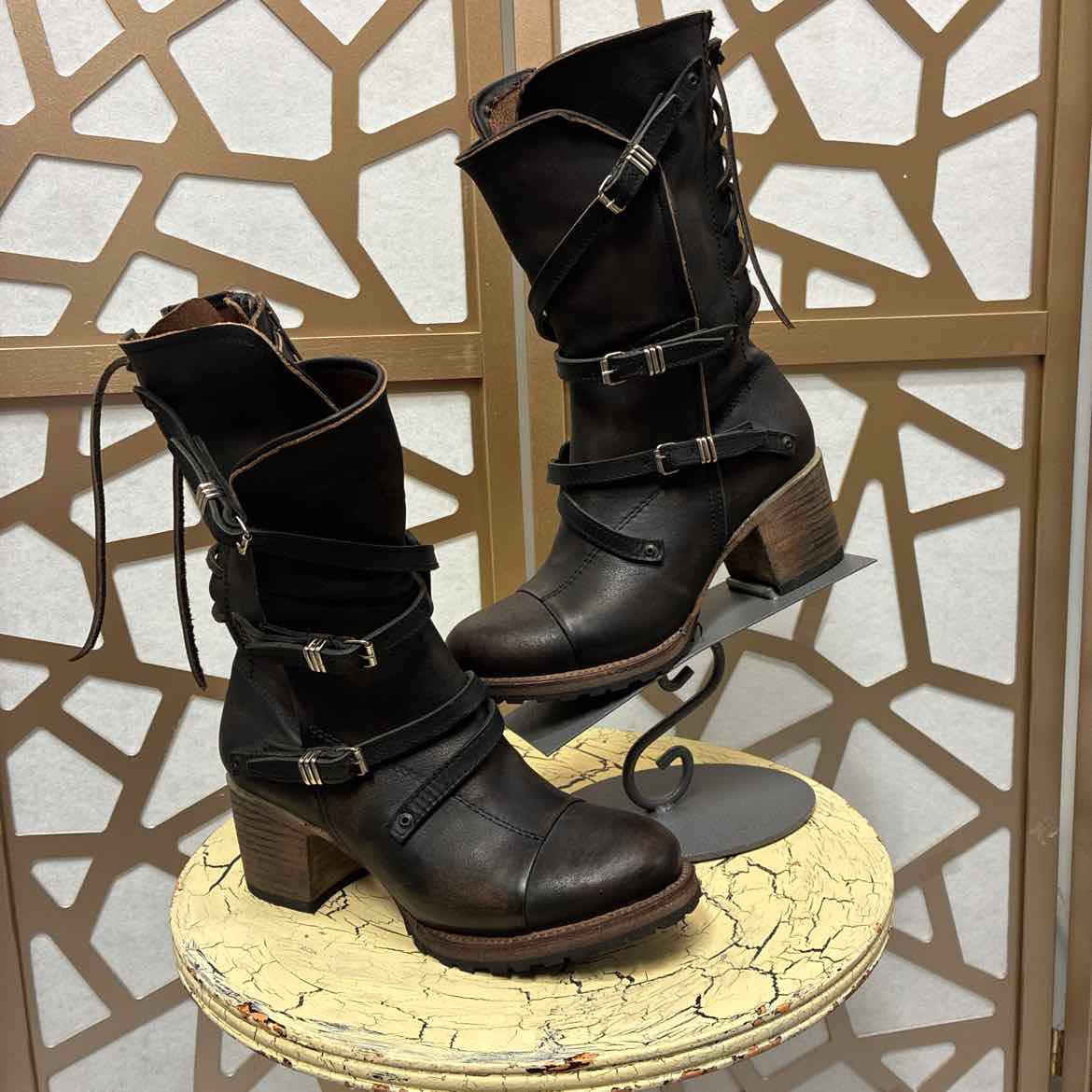 " Cora" Mid calf, distressed, laced in back 3 straps
